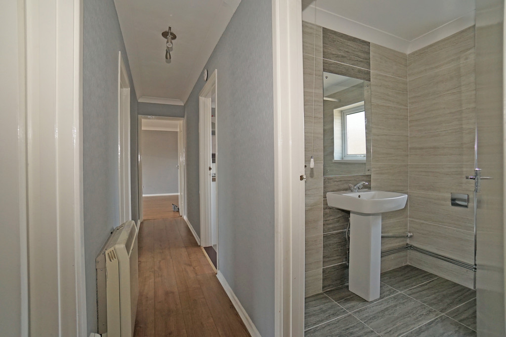 HALLWAY From the front door the hallway leads through the middle of the apartment with door off to all rooms, there is oak effect laminate following and neutral décor.
