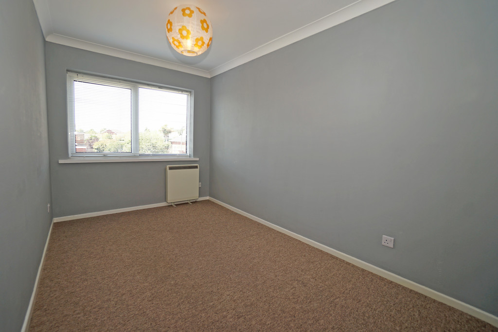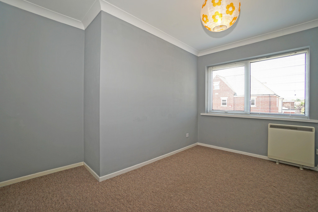 BEDROOM 2 12' 5" x 7' 7" (3.79m x 2.32m) Double bedroom with carpet and neutral décor, window to side aspect with white blind and storage heater.