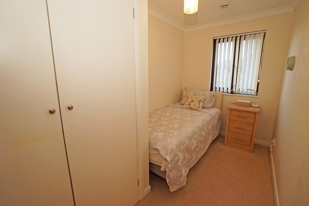 BEDROOM TWO 10' 6" x 6' 0" (3.22m x 1.84m) Single bedroom with built in wardrobe and UPVC double glazed window to rear aspect. Bedside table and single bed.