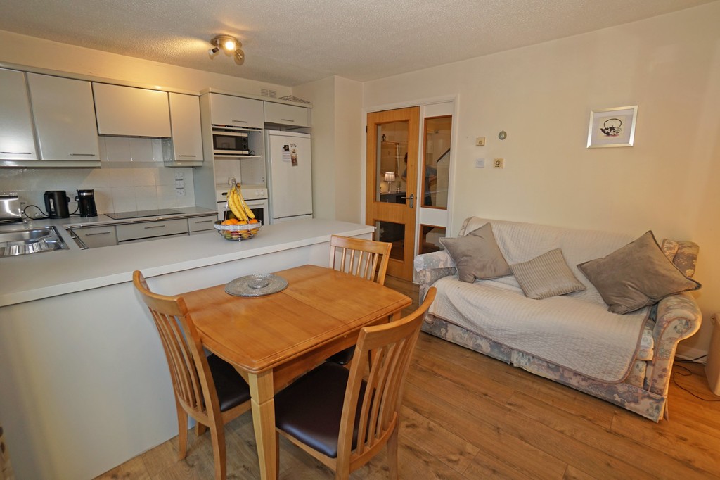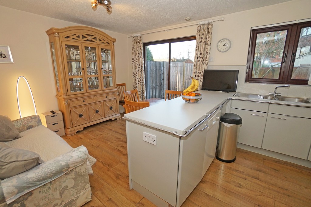 KITCHEN/BREAKFAST ROOM 15' 5" x 11' 9" (4.71m x 3.6m) Fitted kitchen units with built in ceramic hob and single oven. Space for a dishwasher, fridge/freezer and microwave. (These items are included but are to be gifted). Dining area with sliding patio doors onto rear garden. Neutral décor to walls and laminate flooring.