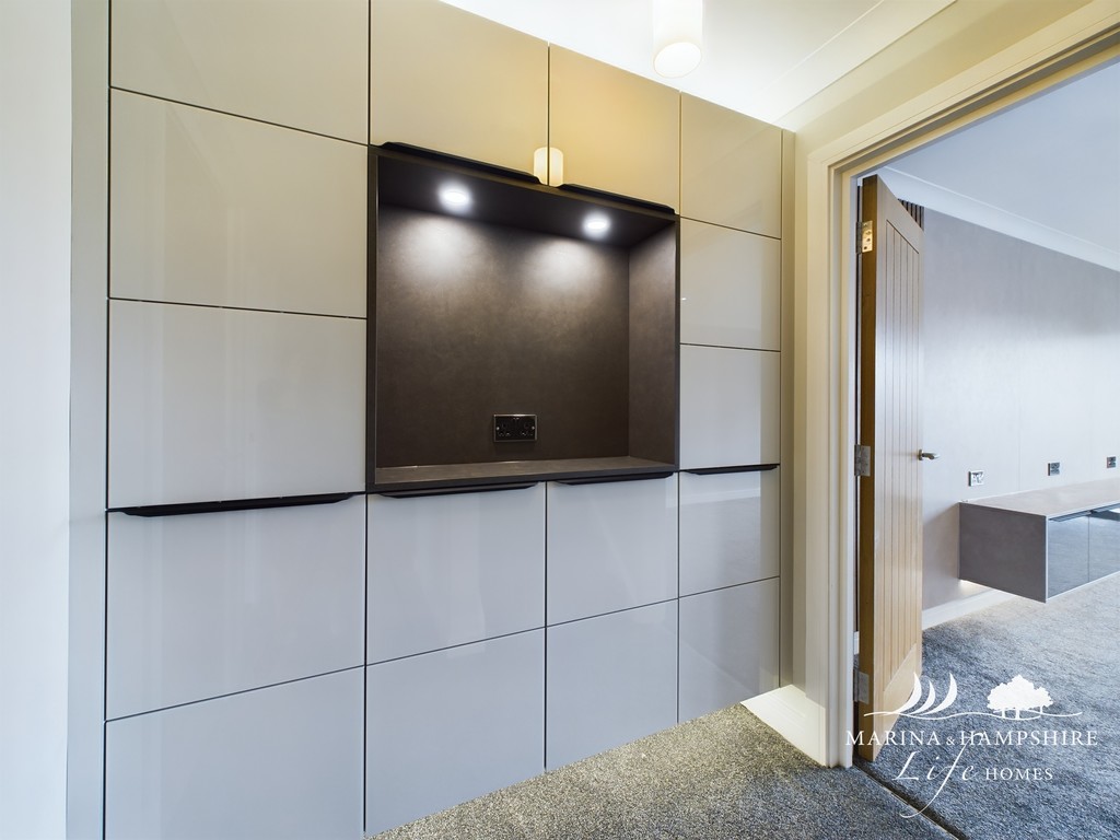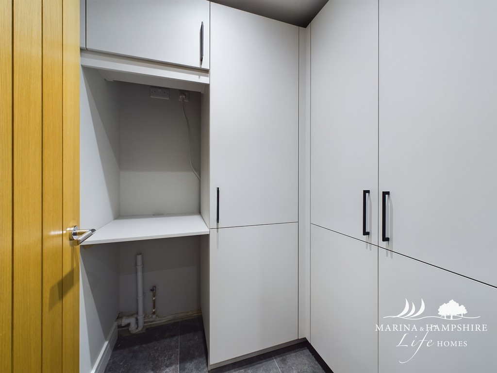 The fully fitted kitchen is situated to the rear of the property and has bifold doors which open onto the marina side garden. It has been thoughtfully designed to provide the perfect kitchen/living space so you can easily accommodate a large table and chairs and sofa if needed - a great place to entertain family and friends with the opportunity to move easily from house to garden. There are built in Siemens appliances to include WIFI operated single oven with warming drawer under and compact oven with steam and microwave over, built in venting induction hob with built in central extractor, full height integrated fridge and built in dishwasher. There is a large stainless steel inset sink with Quooker constant hot water tap fitted. The room is finished with tiled floor, inset spots and LED under cupboard lighting. The ground floor of the house is fitted with 'Warm Up' under floor heating system and ceiling heating panels.