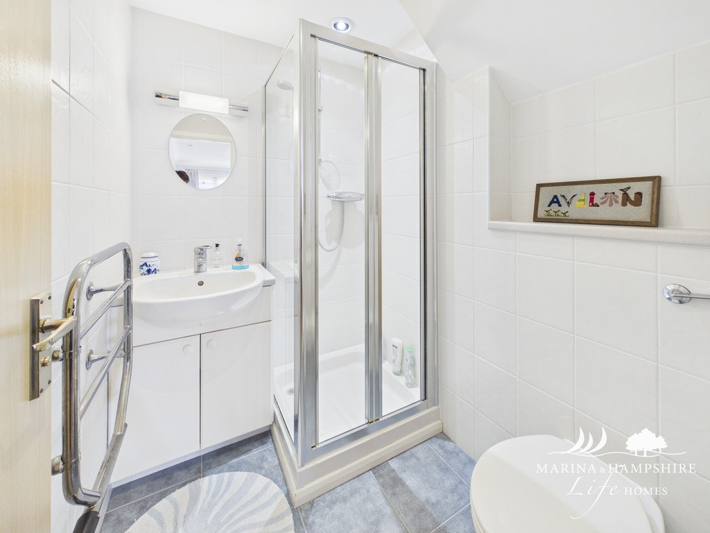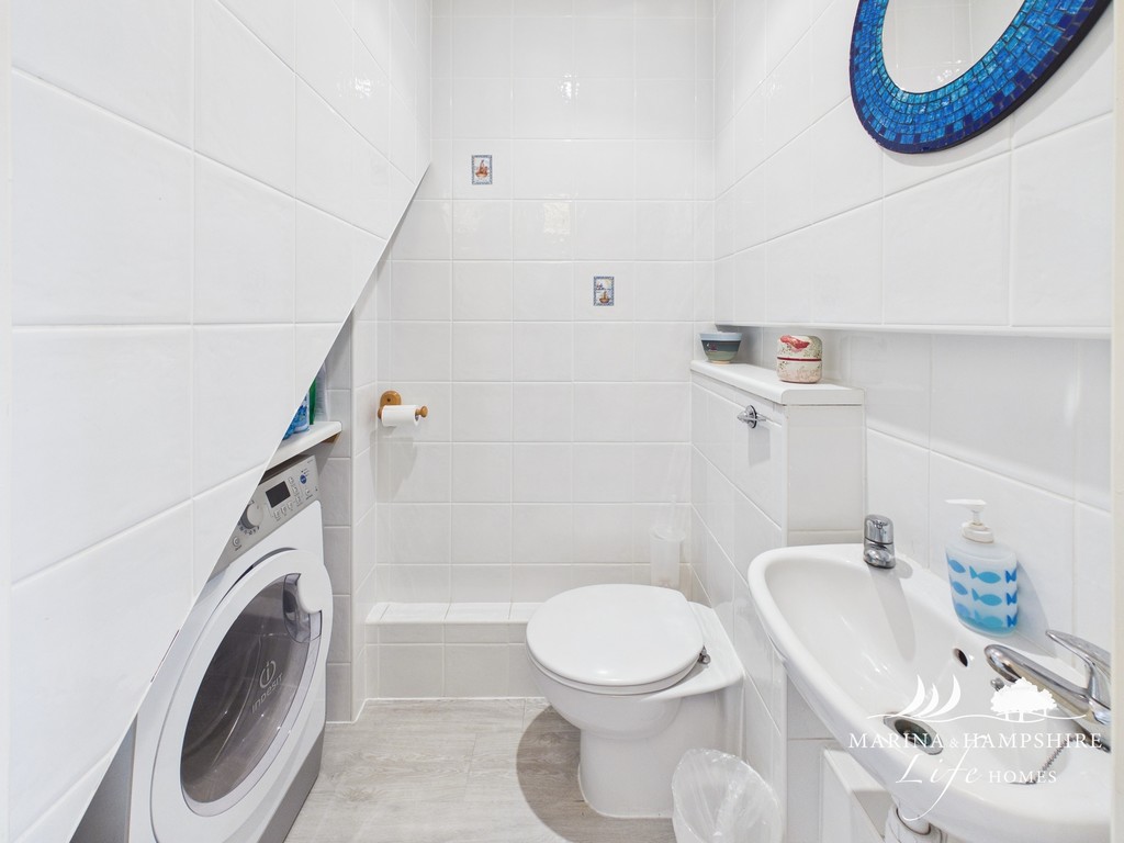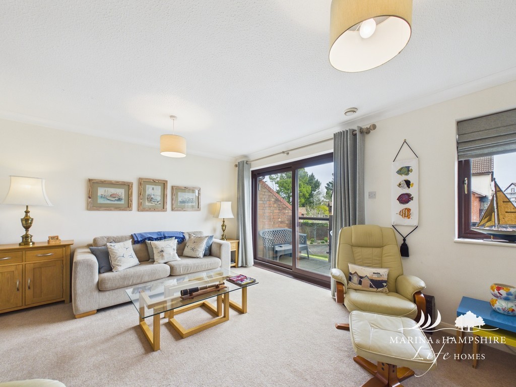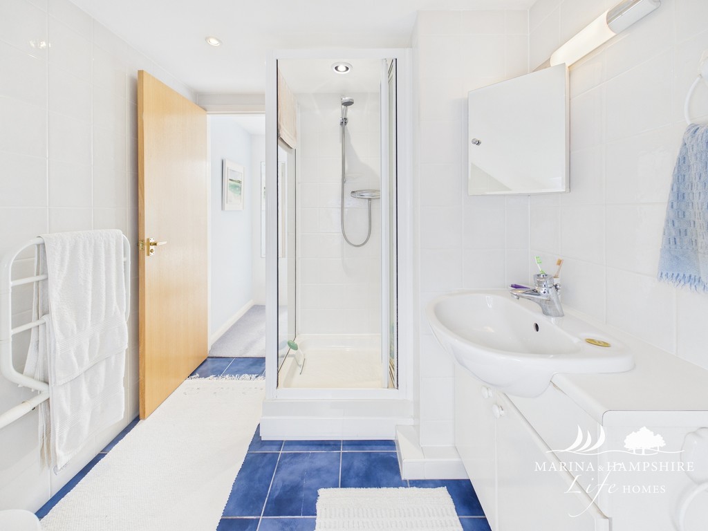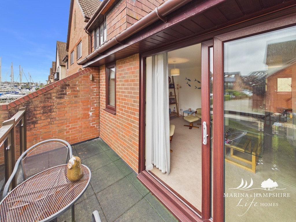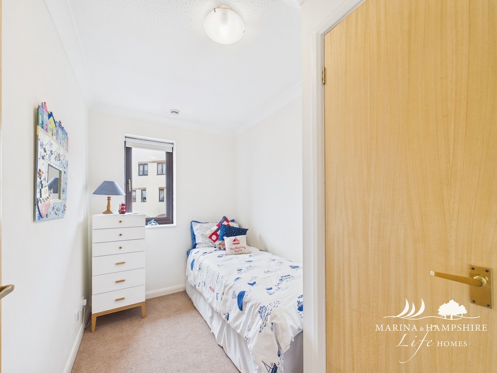 On the first floor, the principal living space enjoys an abundance of natural light, with doors opening onto a private balcony that captures attractive views across the marina, an ideal spot to relax or entertain. This level also offers a well-proportioned double bedroom, a single bedroom, and a modern family bathroom, providing flexible accommodation for family or guests.