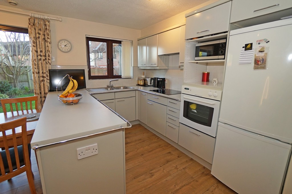 KITCHEN/BREAKFAST ROOM 15' 5" x 11' 9" (4.71m x 3.6m) Fitted kitchen units with built in ceramic hob and single oven. Space for a dishwasher, fridge/freezer and microwave. Dining area with sliding patio doors onto rear garden. Neutral décor to walls and laminate flooring.