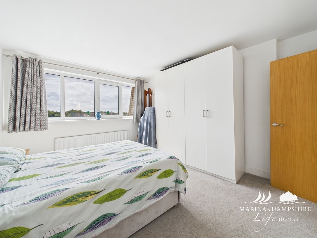 The large bedroom offers plenty of space to accommodate a large bed as well as plenty of storage. The bedroom has lovely views of the marina from its South facing windows.