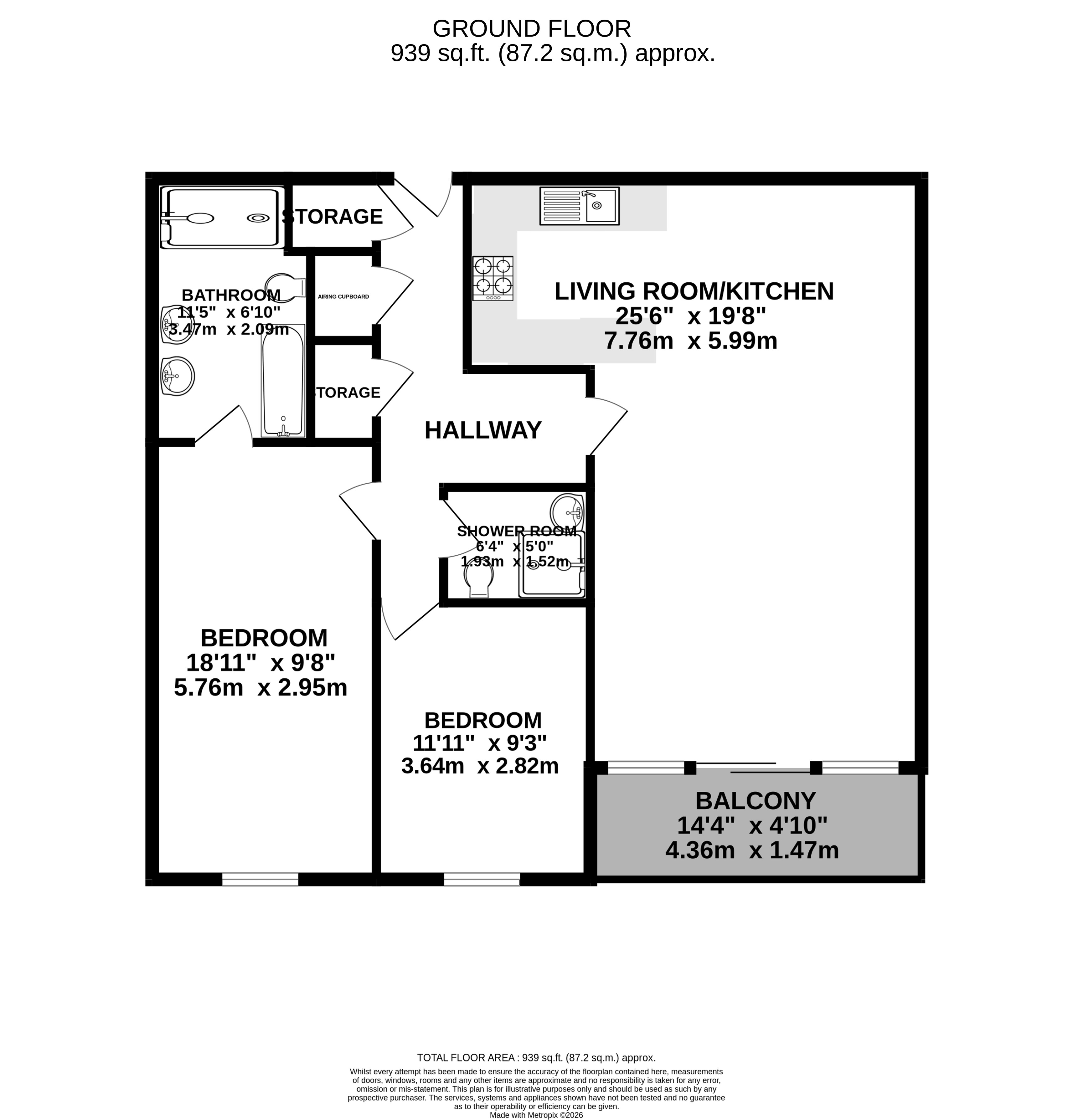 BALCONY - 12' 9" x 5' 2" (3.89m x 1.58m)